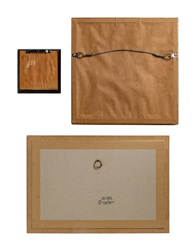 3 and 4) An gilt-bronze example depicting the monument to Louis XVI at Port Vendres, the other example with a commemorative inscription for the monument (framed together, each approx. 84mm)