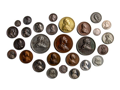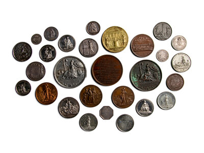 together with a group of other restrikes and smaller tokens and jetons.