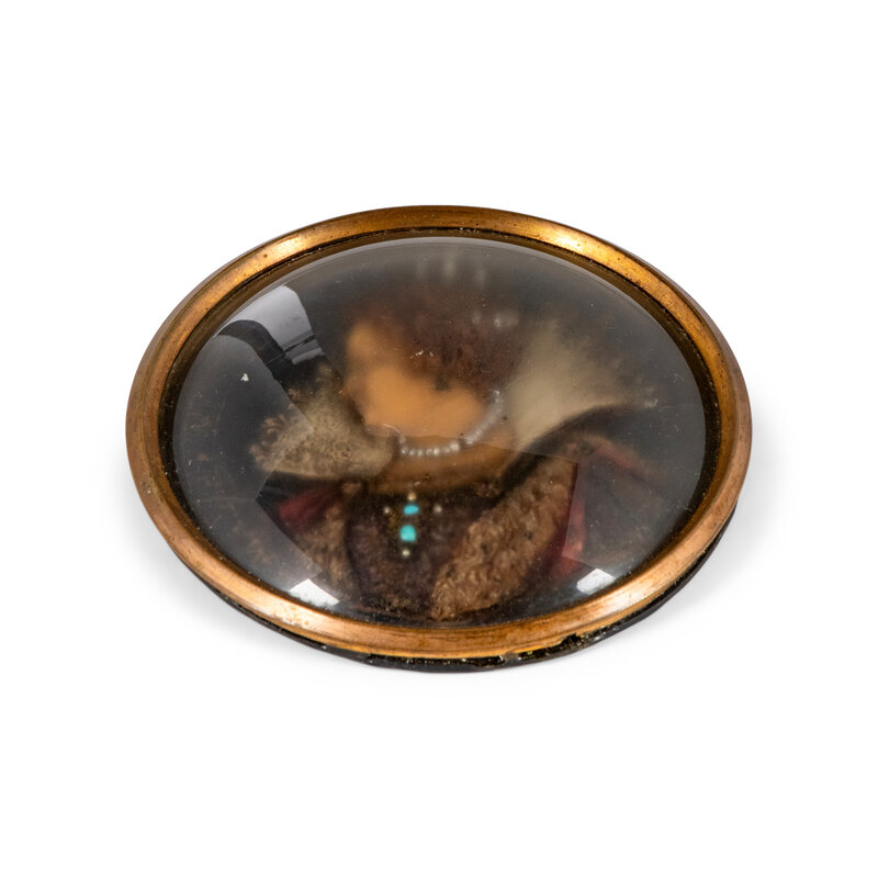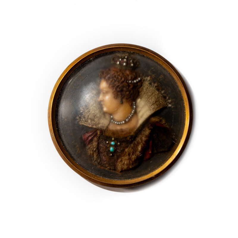 A Continental Wax and Jewel-Inset Profile Medallion of Catherine de' Medici