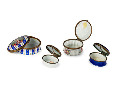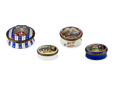Four Continental and Staffordshire Enamel Snuff Boxes