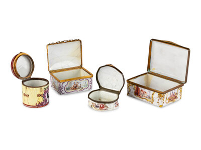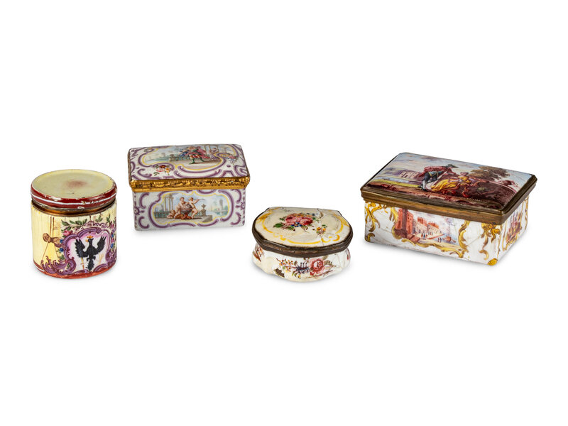 Four Staffordshire Enamel Snuff Boxes