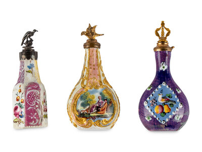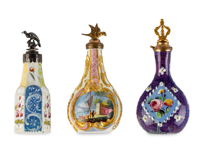 Three South Staffordshire Enamel Scent Bottles