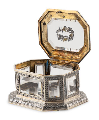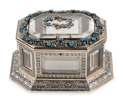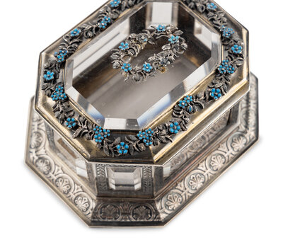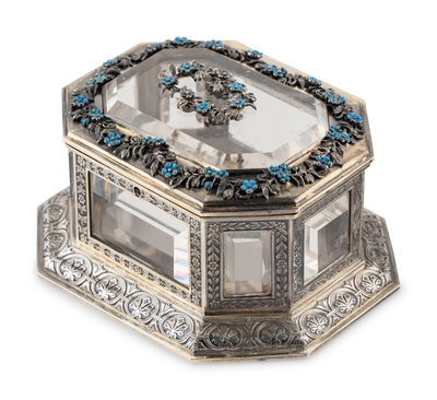 A Continental Enameled Silver and Rock Crystal Mounted Small Box