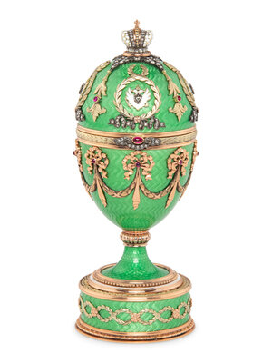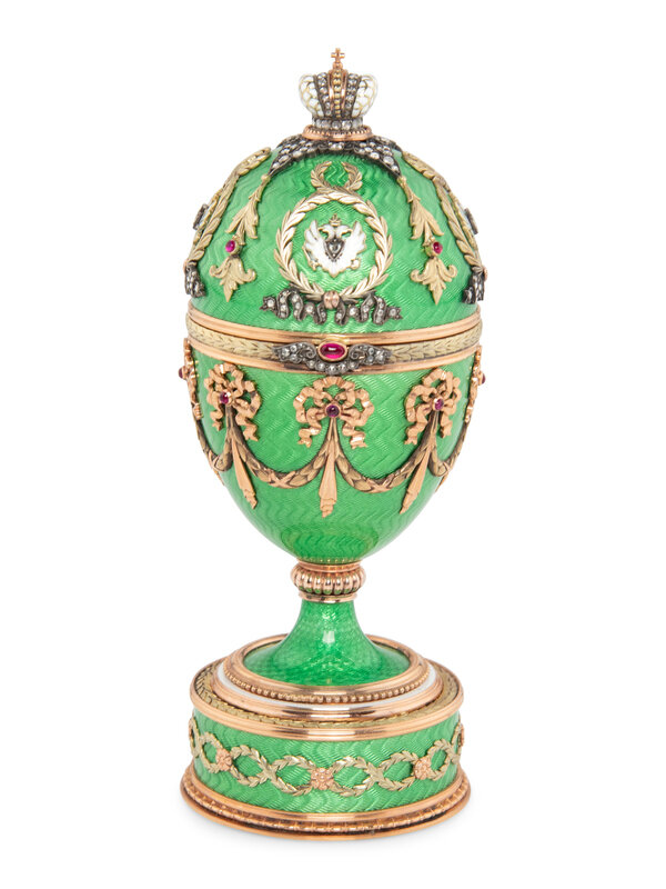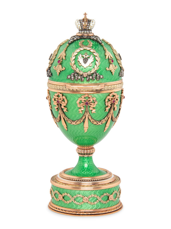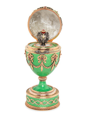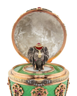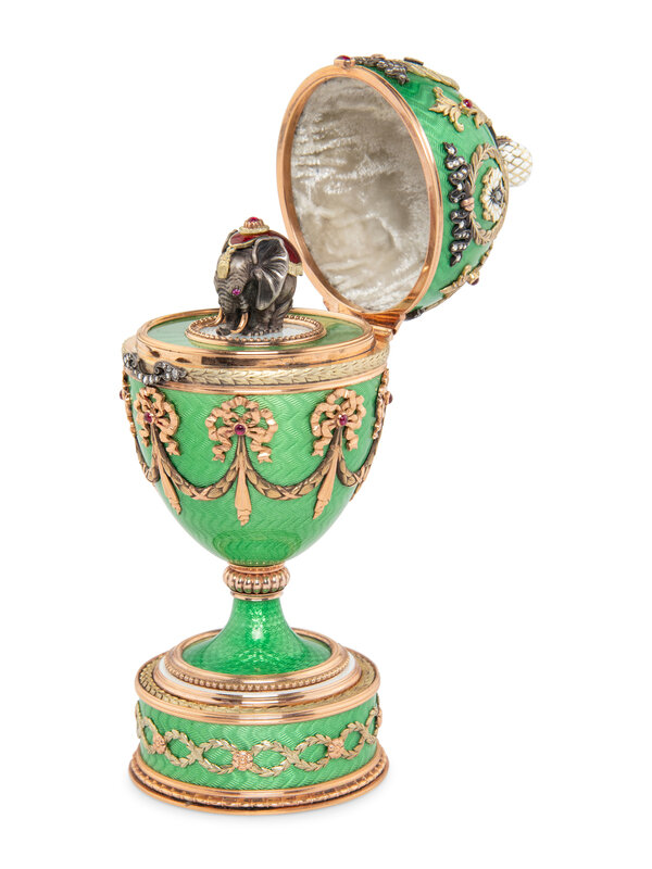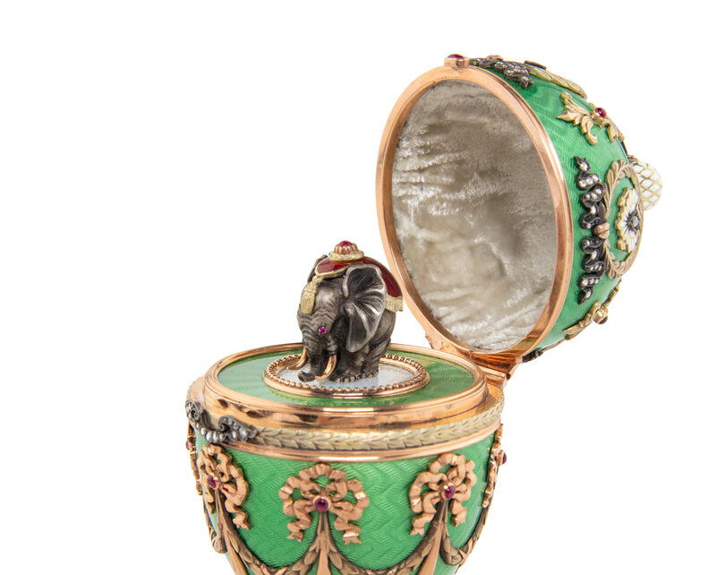 having Russian Imperial double-eagle mark, opening to reveal an elephant, together with wooden case.