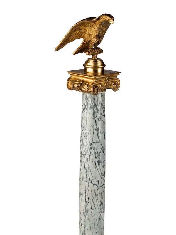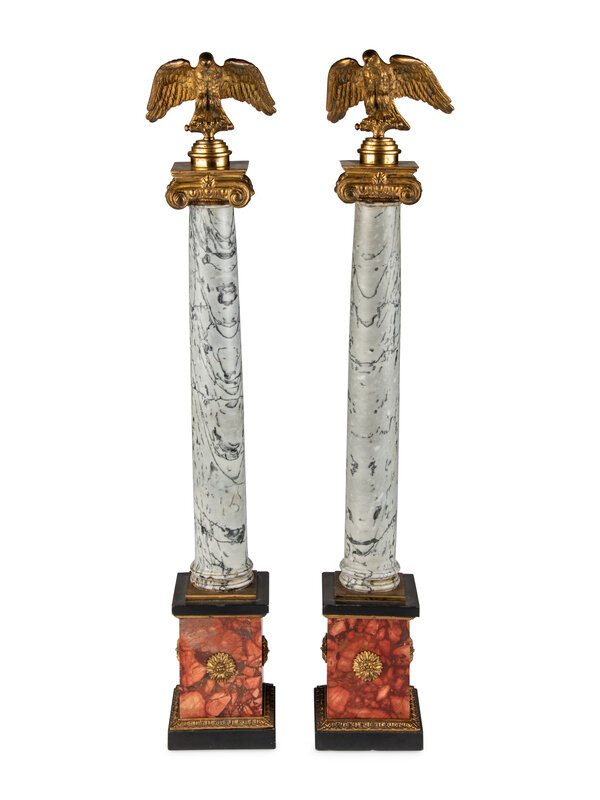A Pair of Italian Gilt-Bronze Mounted Variegated Grey and Breccia Rosso Marble Columns