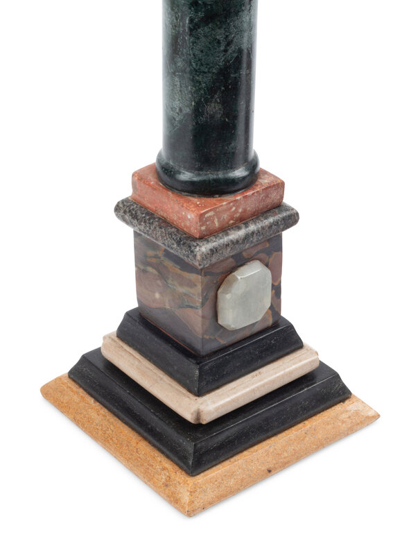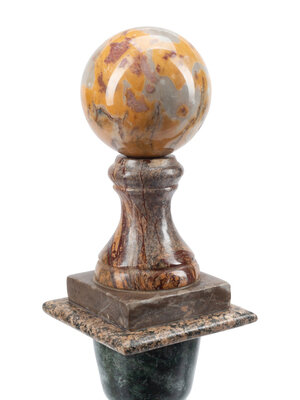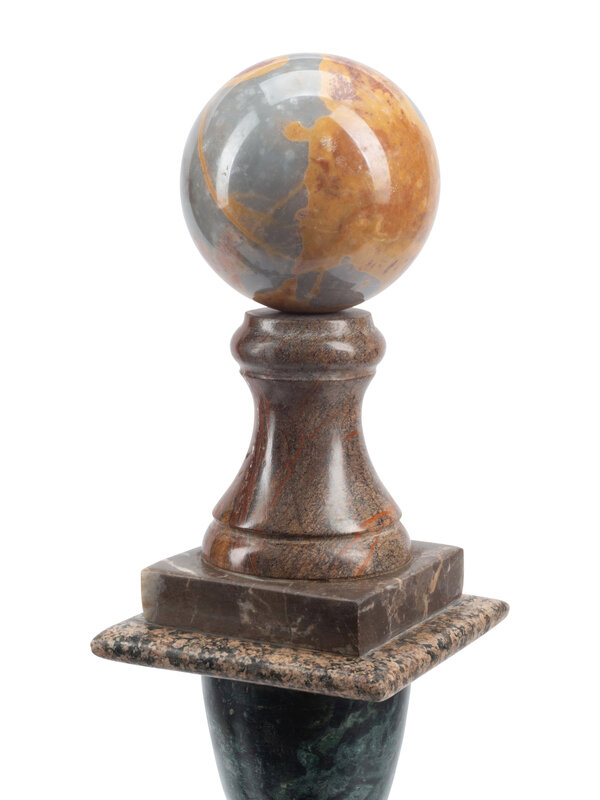 A Pair of Italian Grand Tour Style Multi-Color Marble Columns and Spherical Ornaments