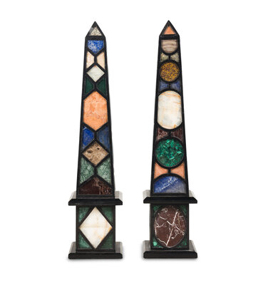 A Monumental Pair of Specimen Marble and Slate Obelisks