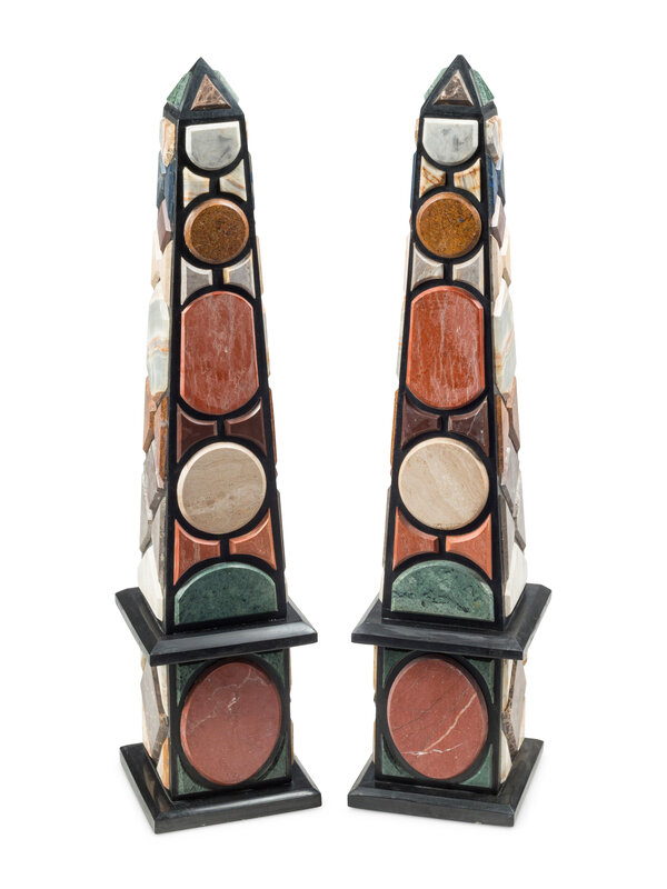 A Pair of Large Italian Grand Tour Style Specimen Marble Obelisks