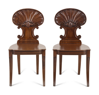 A Pair of Regency Mahogany Hall Chairs