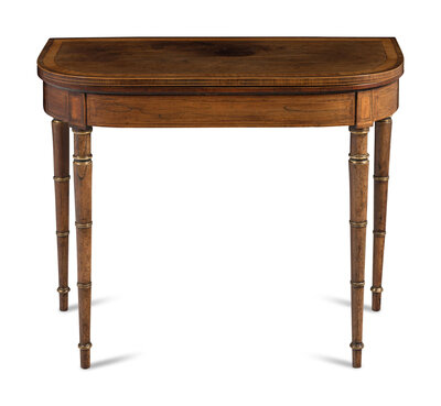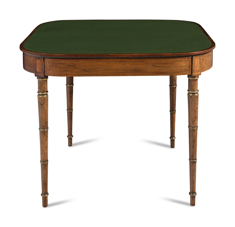 A Regency Rosewood, Satinwood and Parcel-Gilt Flip-Top Games Table