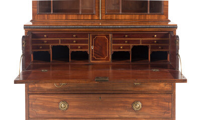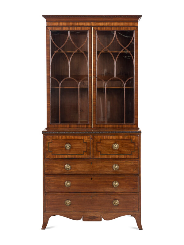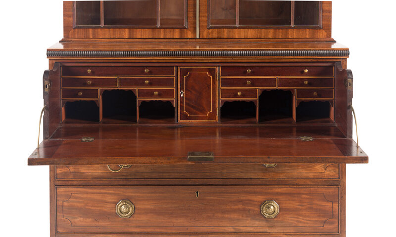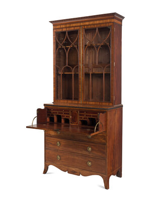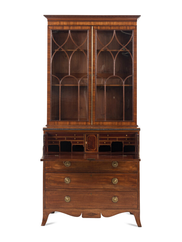 A George III Mahogany and Parcel Ebonized Bureau Bookcase