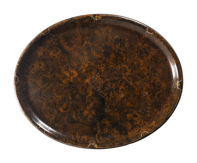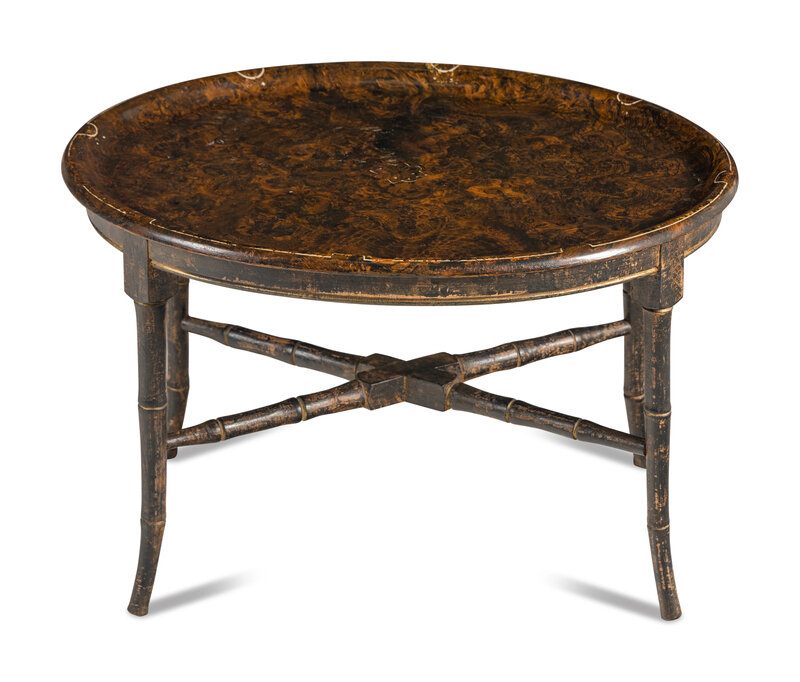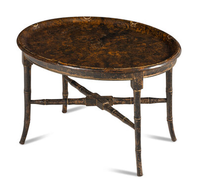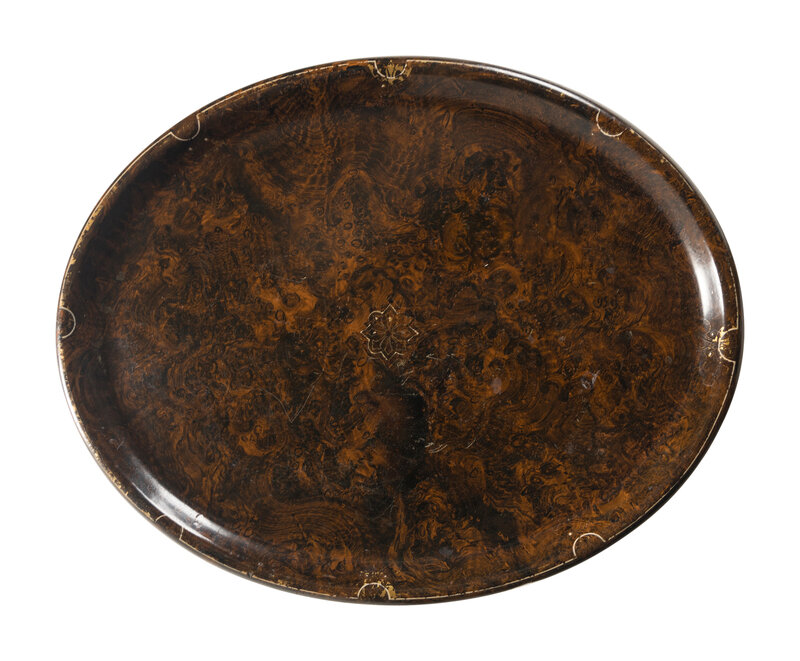 A Faux Bois and Parcel Gilt Papier-Mâché Tray on Stand