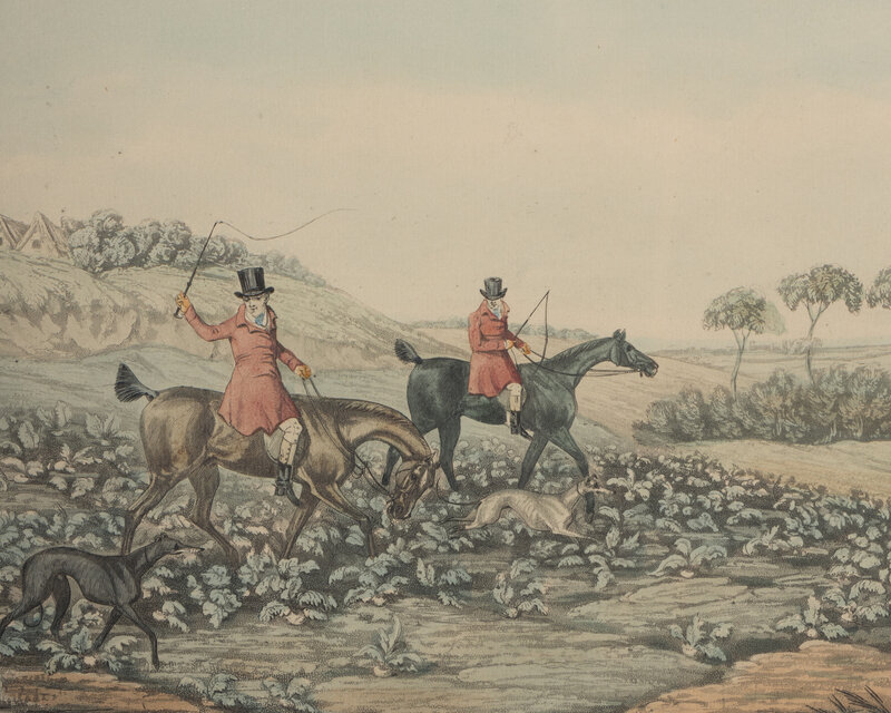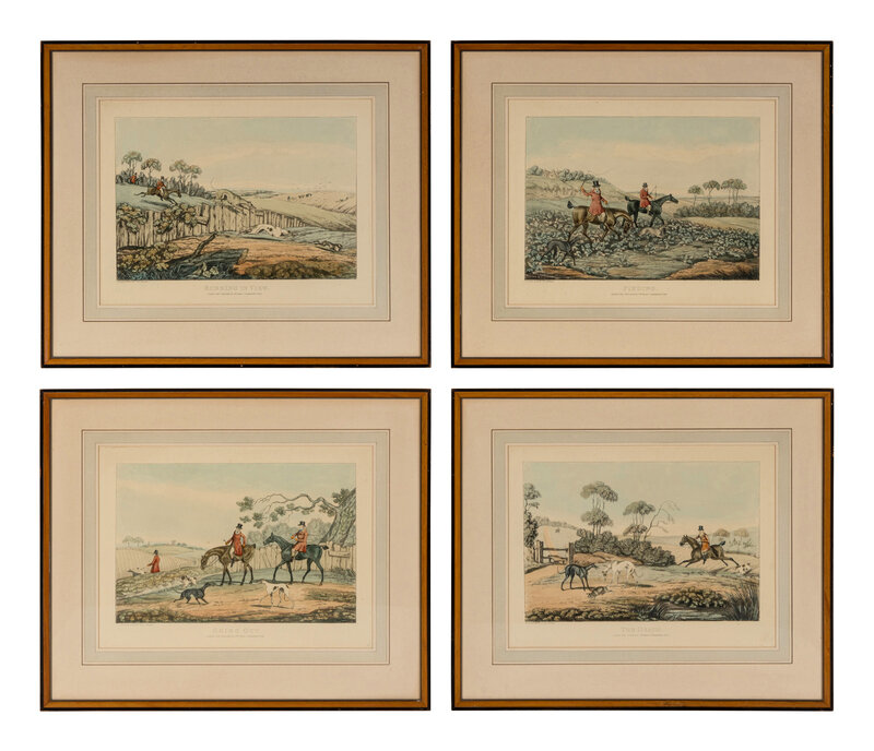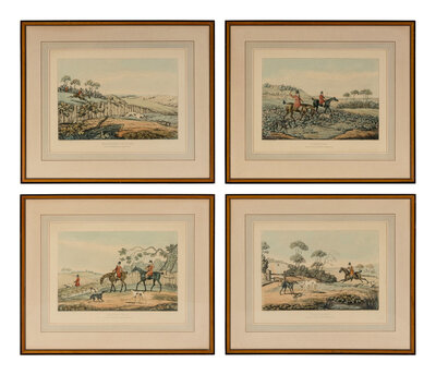 A Set of Four English Hand-Colored Etchings of Hunting Scenes