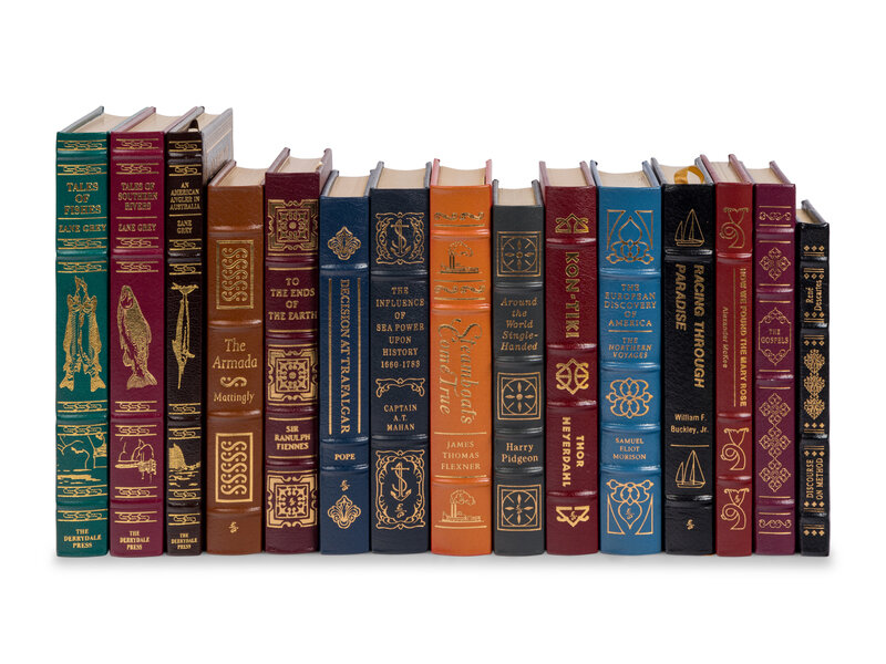 [BINDINGS]. A large group of 92 titles from the Easton Press and Derrydale Press, mostly nautical related, including: