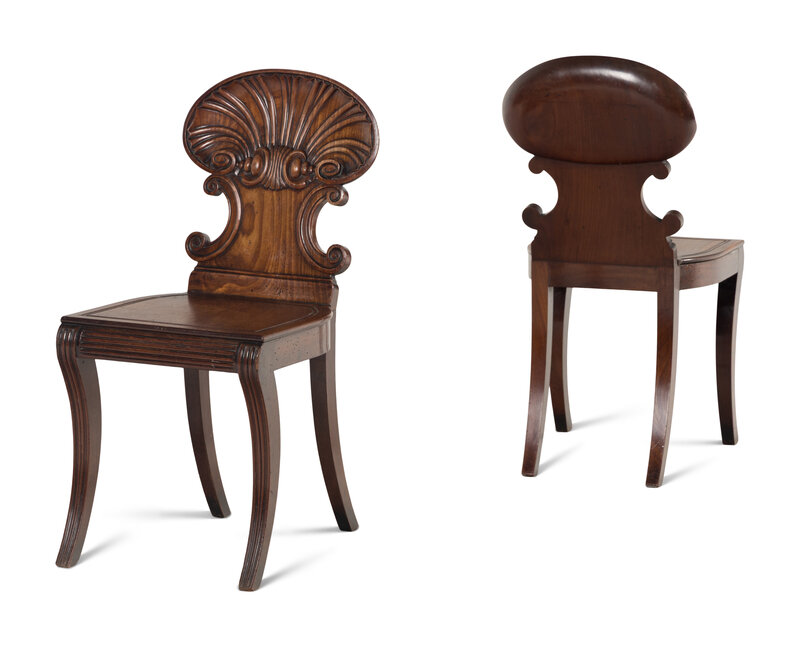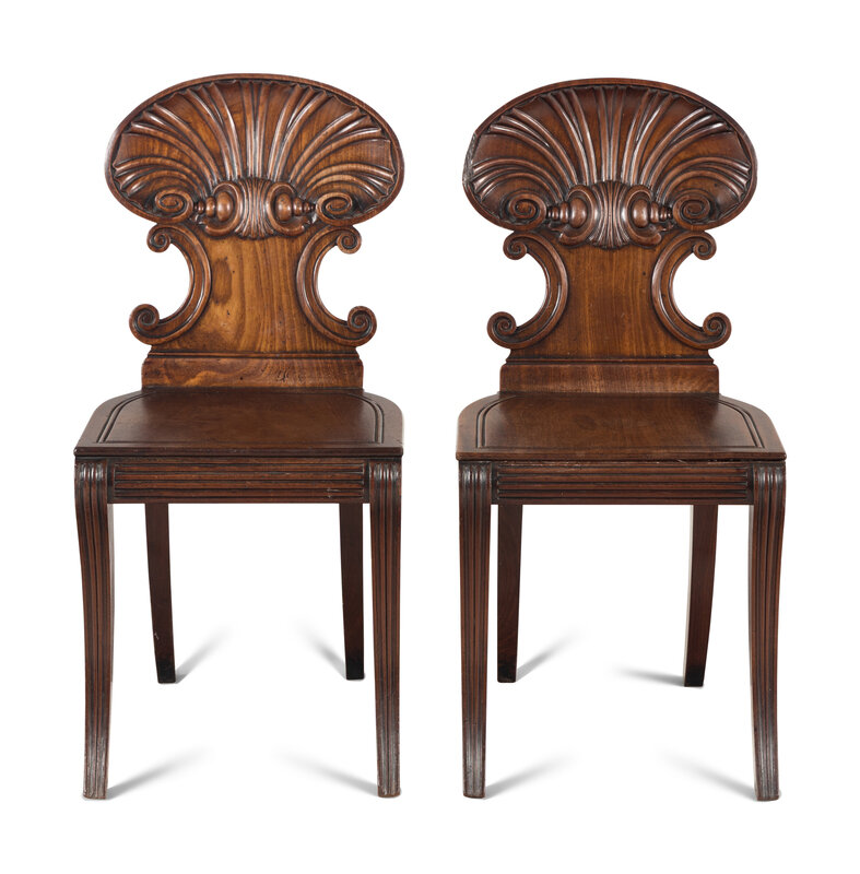 A Pair of Regency Mahogany Hall Chairs