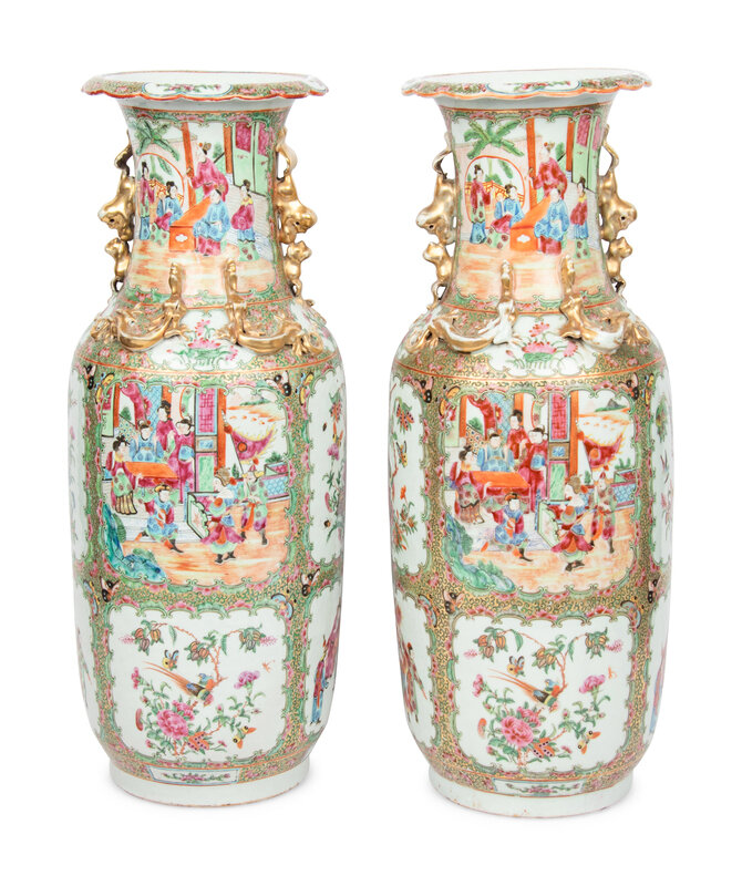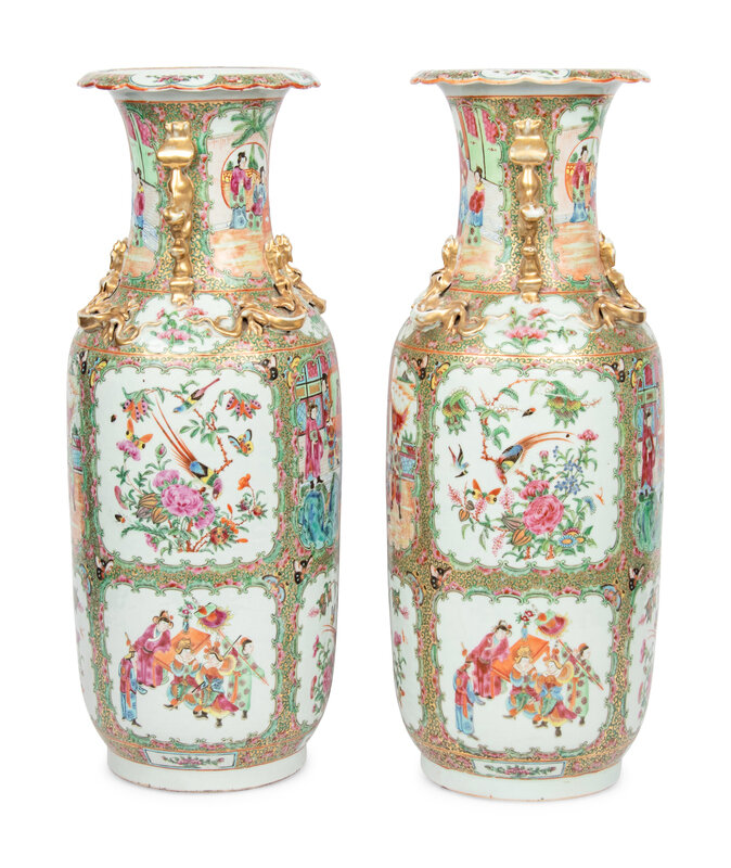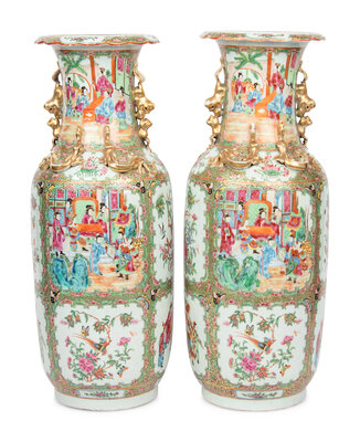 A Pair of Chinese Export Rose Medallion Porcelain Vases