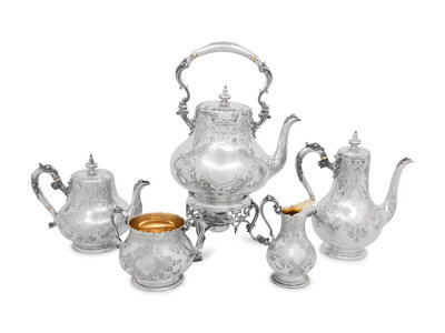 A Victorian Silver Five-Piece Tea and Coffee Service