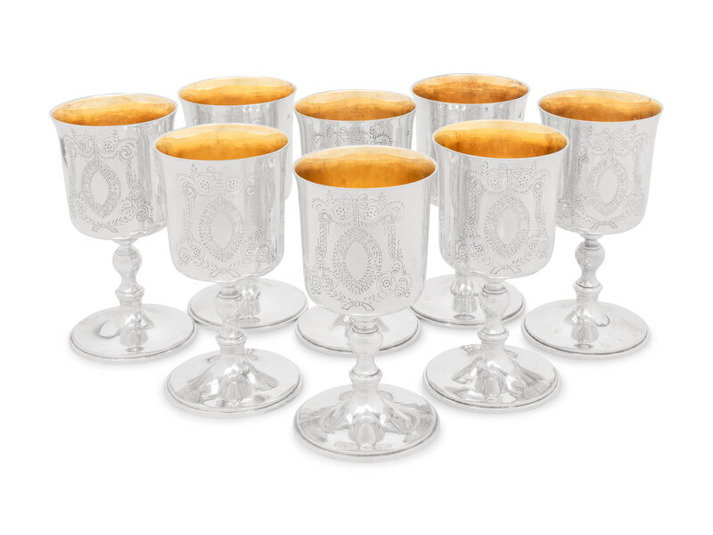 A Set of Eight Irish Silver Goblets