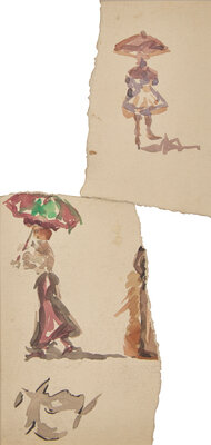 Two Works: Woman with Parasol; together with Woman Walking with Parasol (Fragments) (2)