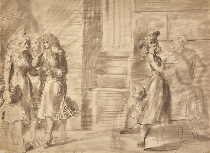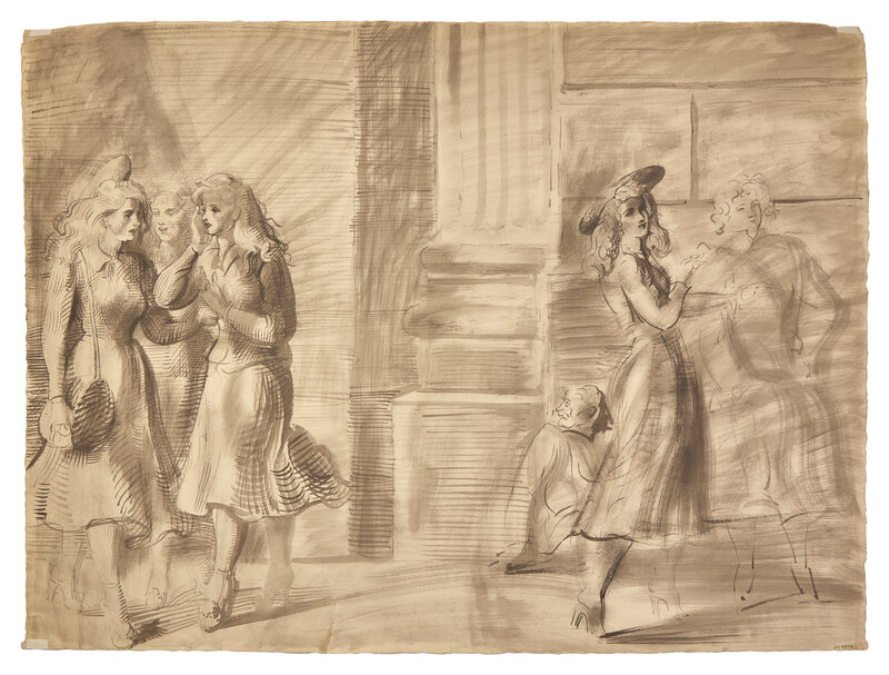 Men and Women Conversing; with Walking Girls (A Double-Sided Work)
