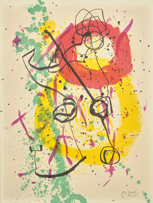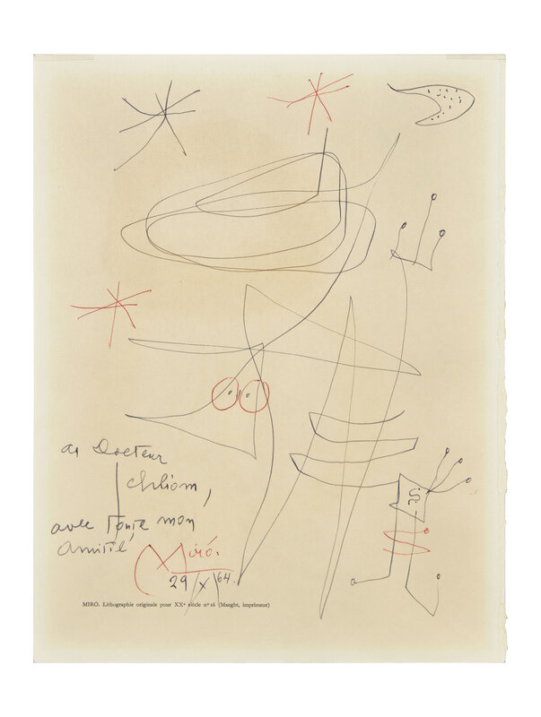 signed Miró in ink (lower right), signed again, dated and dedicated 'À Docteur Chliom, Avec Toute Mon Amitié' (verso)