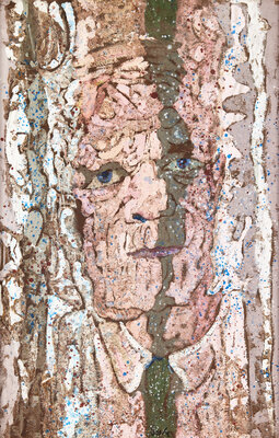 oil and mixed media on thin handmade paper