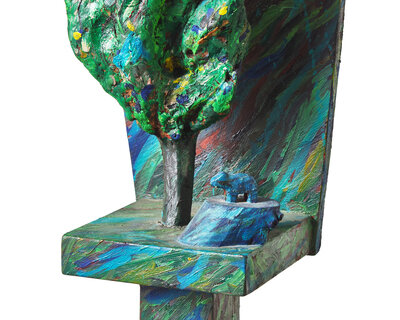 painted wood and collage
