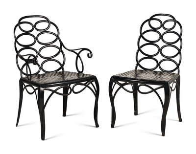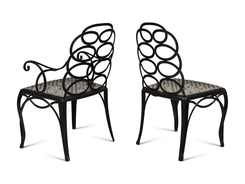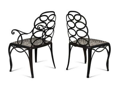 A Painted Metal Garden Armchair and Side Chair