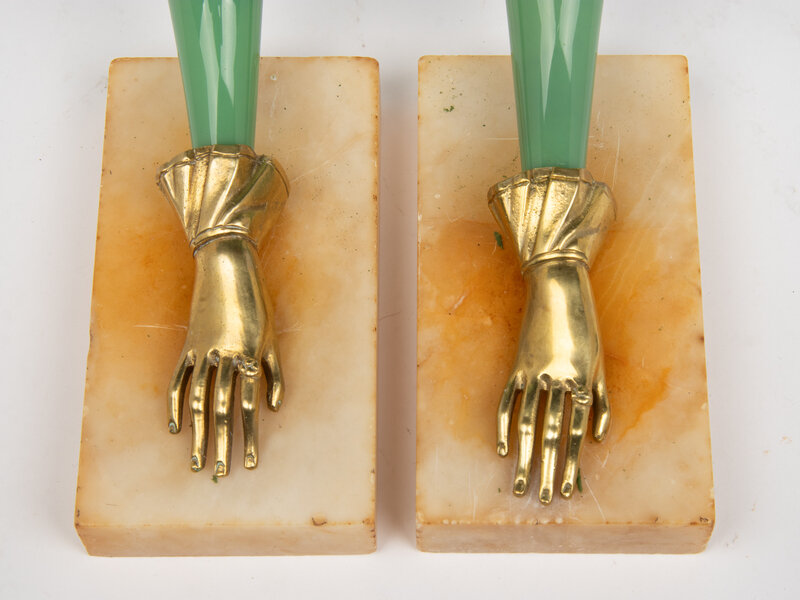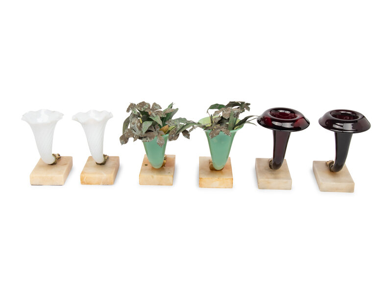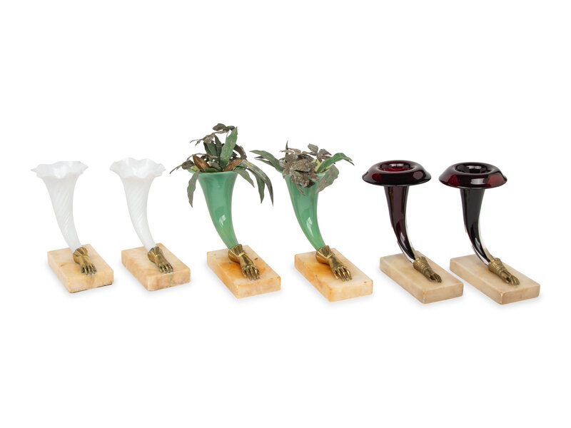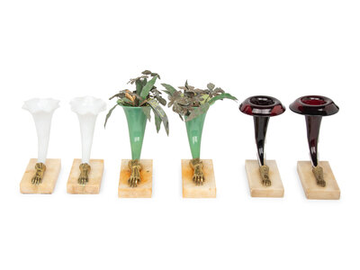 Three Pairs of Continental Gilt Metal Mounted Glass Rhyton Vases