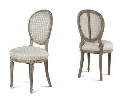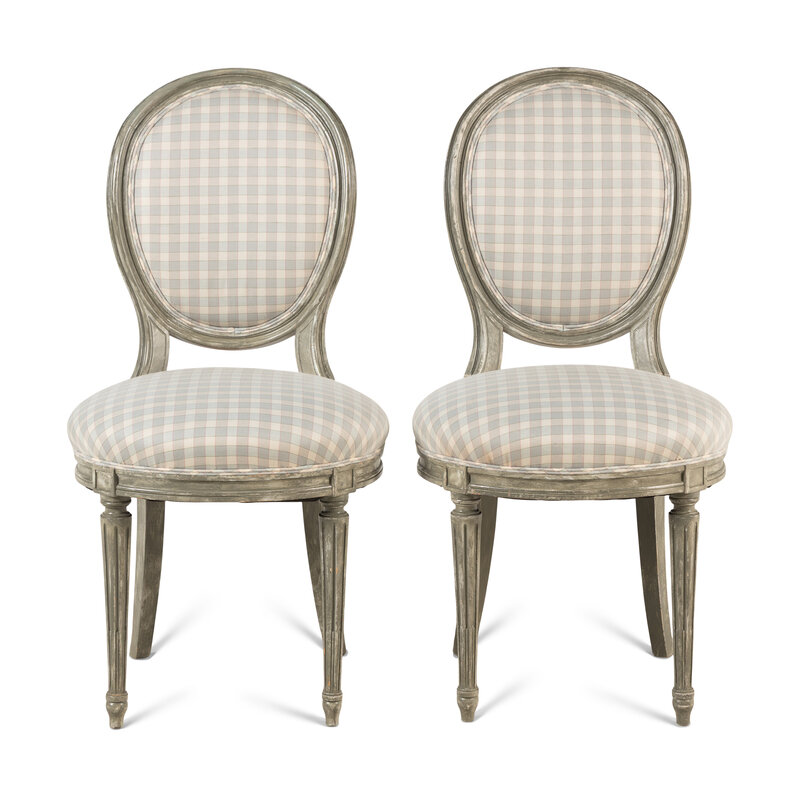 A Pair of Louis XVI Style Blue-Painted Side Chairs