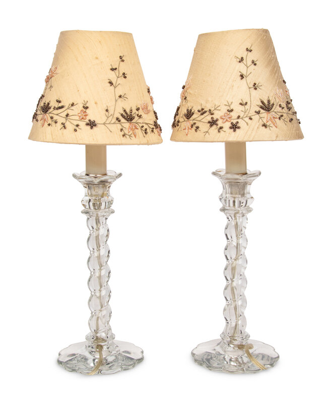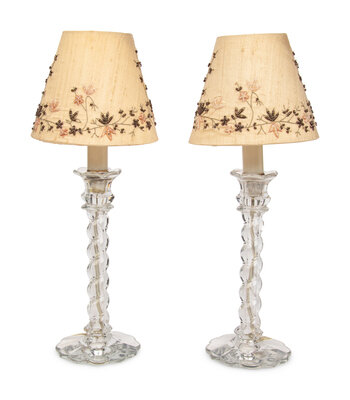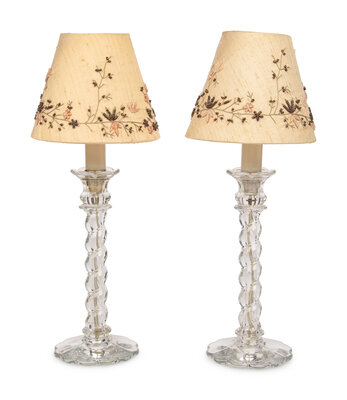 A Pair of Molded Glass Candlesticks Mounted as Lamps