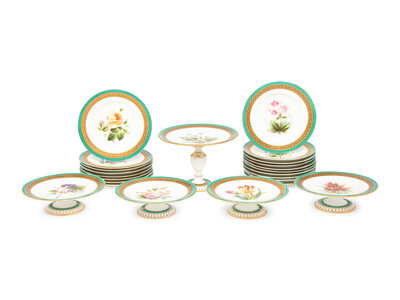 An English Hand-Painted Porcelain Dessert Service