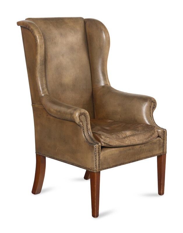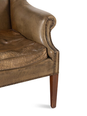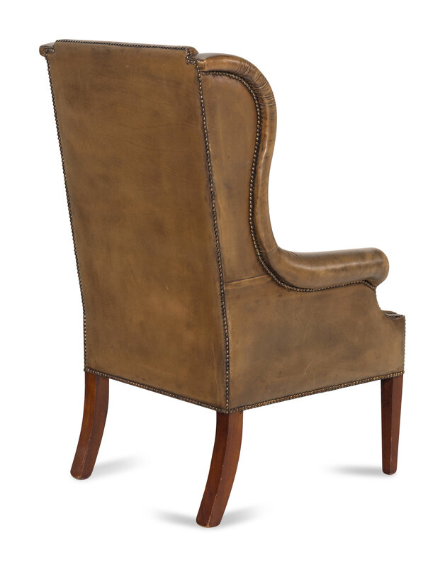 An English Mahogany Leather-Upholstered Wingback Armchair