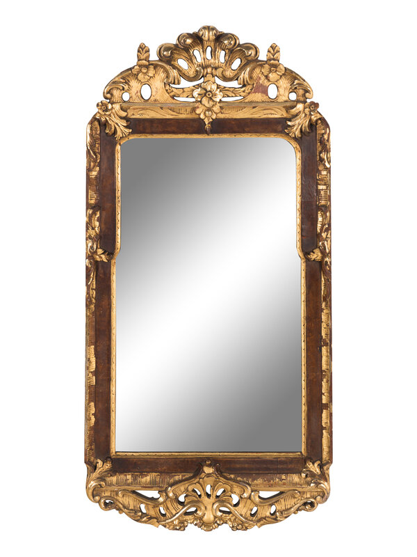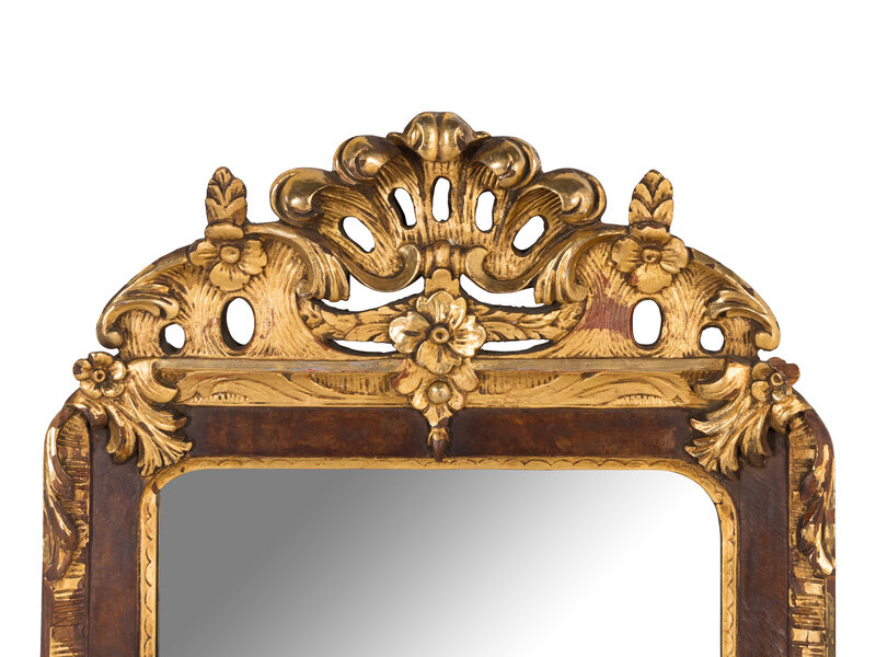 A Scandinavian Rococo Walnut and Parcel-Gilt Mirror