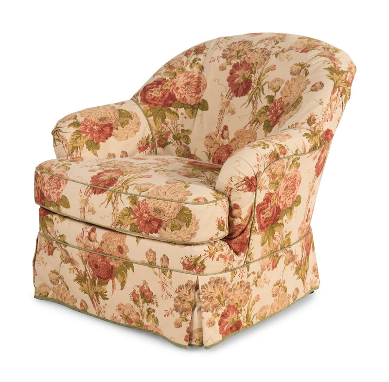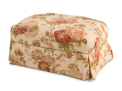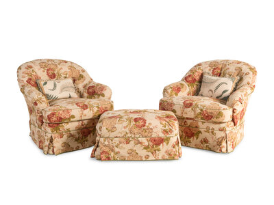 Two Chintz Slip-Covered Armchairs and an Ottoman