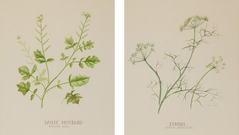 Four Louise Smith Watercolor Botanical Illustrations