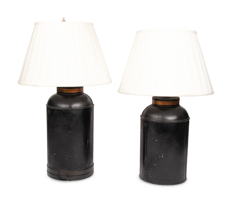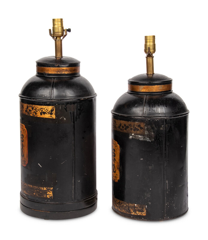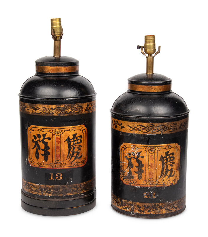 Two Chinese Tôle Peinte Tea Canisters Mounted as Lamps