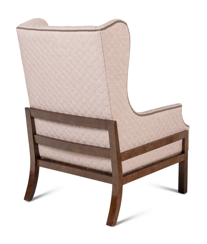 A Pair of Contemporary Stained Maple Wingback Chairs