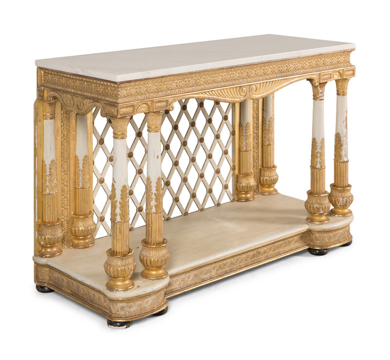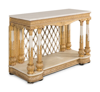 A North European White-Painted and Parcel-Gilt Marble-Top Console Table