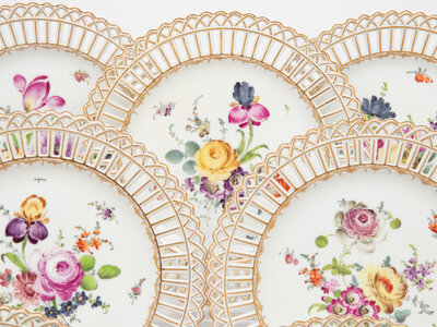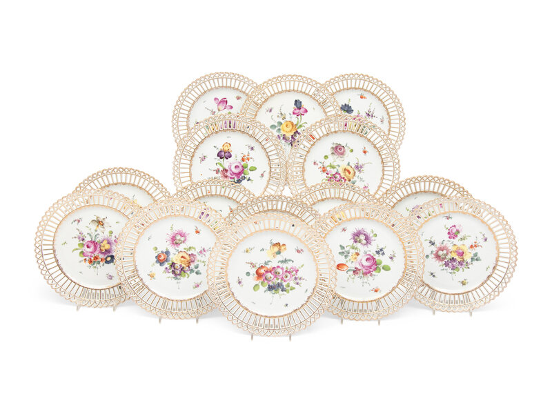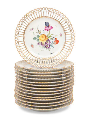 A Set of Fifteen Dresden Porcelain Reticulated Dessert Plates