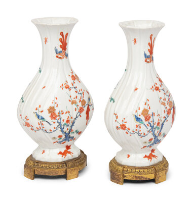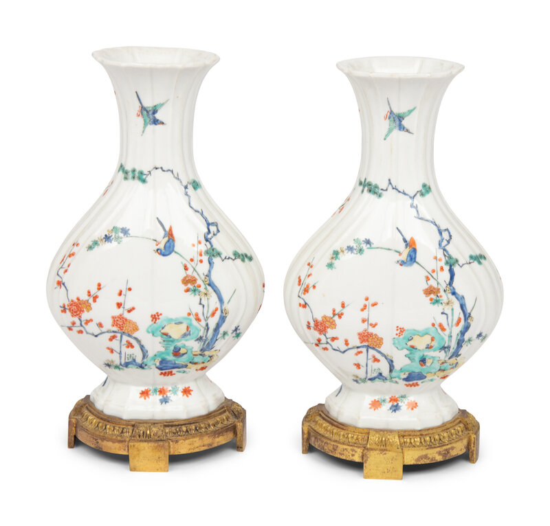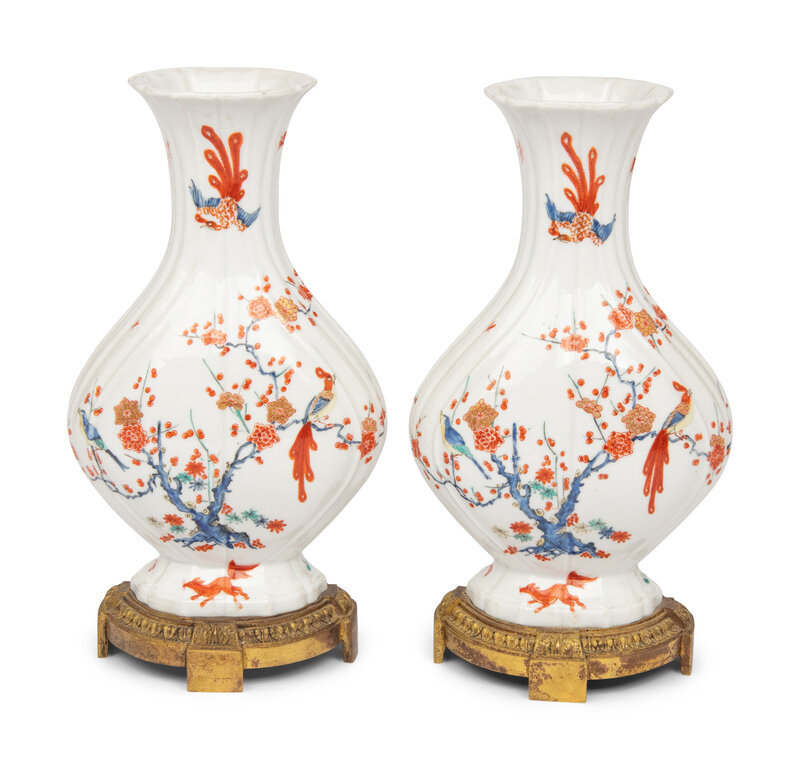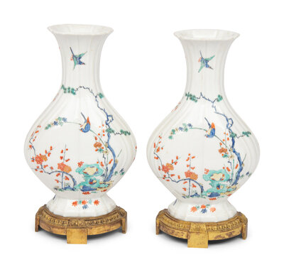 A Pair of Samson Chantilly-Style Porcelain and Gilt Bronze Mounted "Kakiemon" Vases