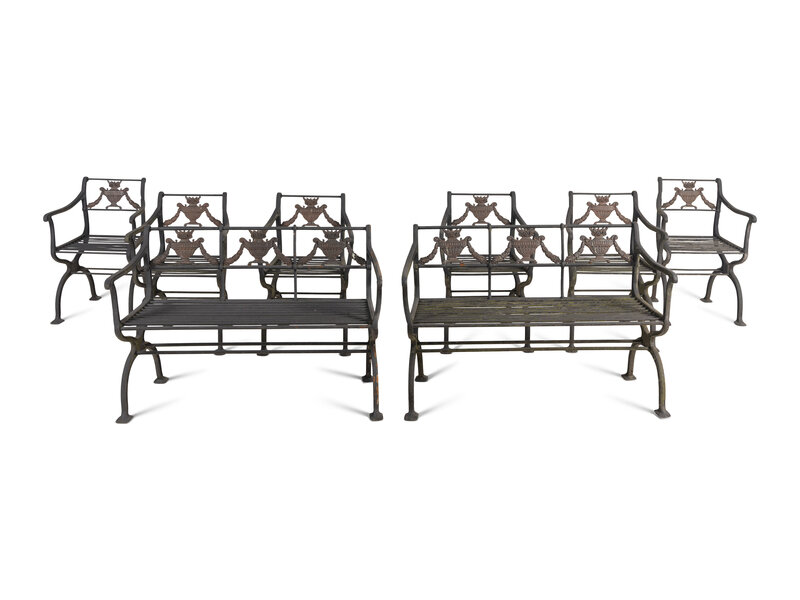 A Neoclassical Cast Iron Eight-Piece Garden Suite