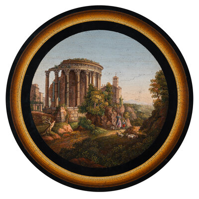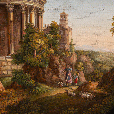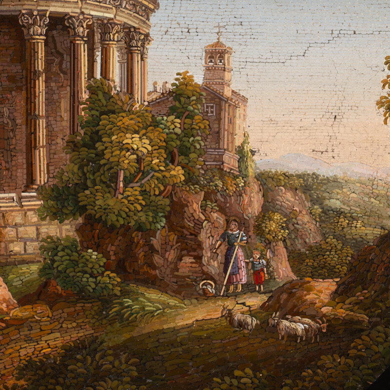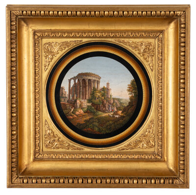 An Italian Micromosaic Plaque Depicting the Temple of Vesta at Tivoli
