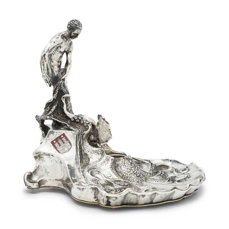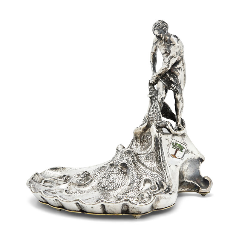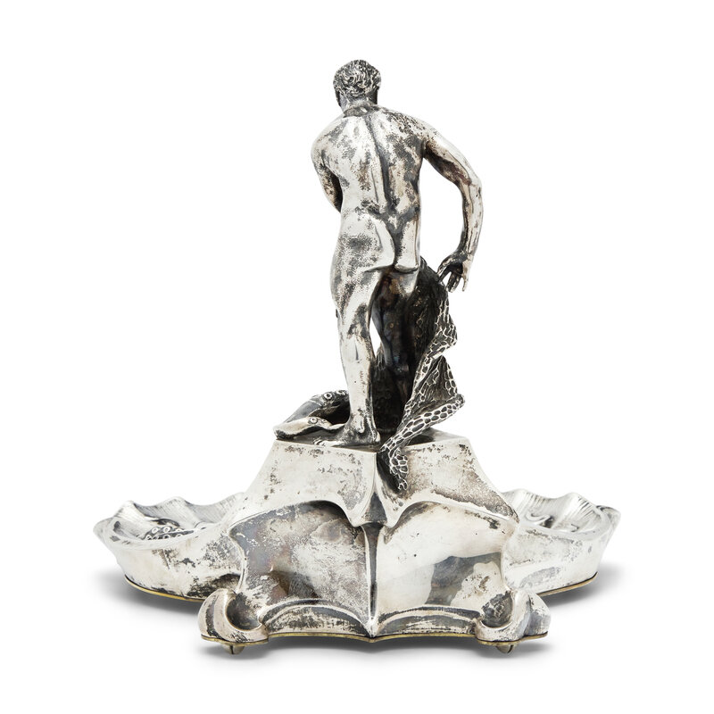 the nude fisherman capturing an octopus, the base in the form of a scallop shell.