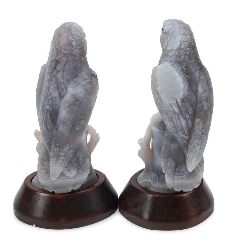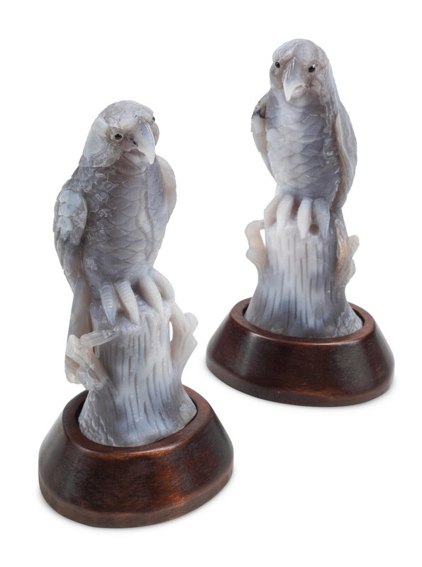 A Pair of Carved Hardstone Models of Parrots