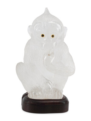 A Carved Rock Crystal Model of a Seated Monkey