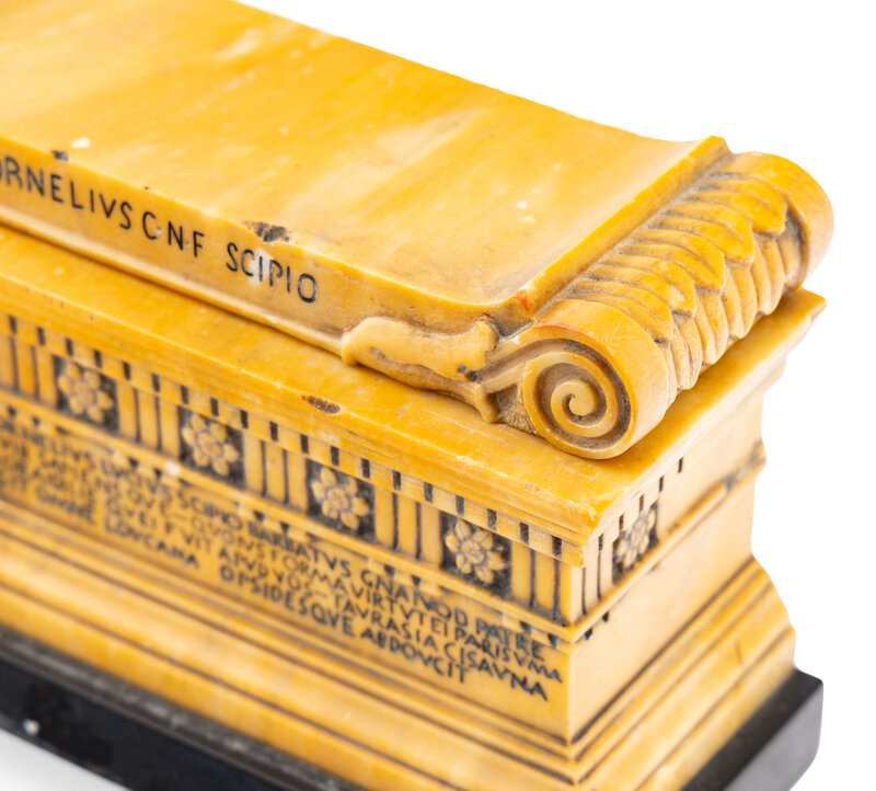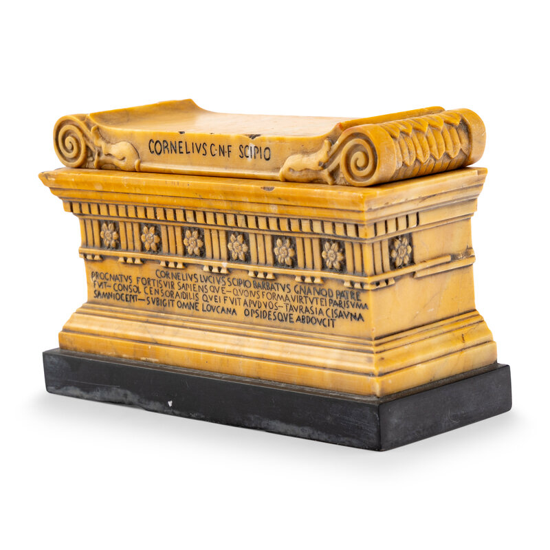 A Grand Tour Marmo Giallo Antico Model of the Sarcophagus of Lucius Cornelius Scipio