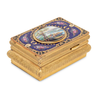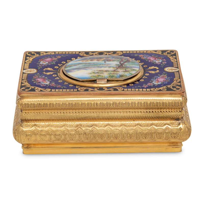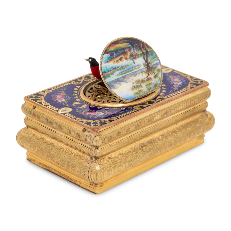 A German Gilt-Metal and Enamel Singing Bird Automaton Box