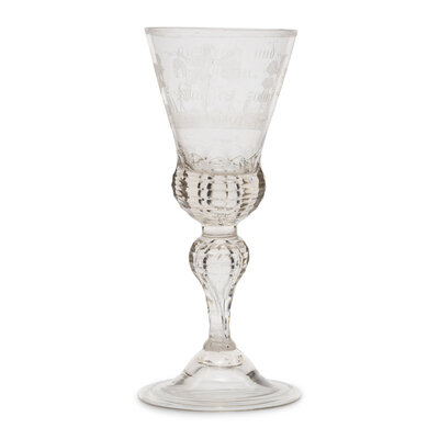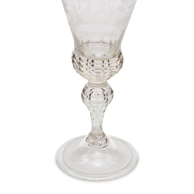 A German Engraved and Faceted Glass Wine Stem