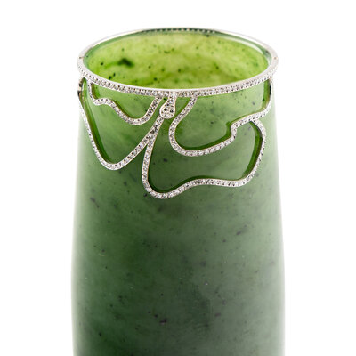 the rim stamped 'Pt950' for platinum and bearing a small gavel hallmark, indicating that the vase was imported into Switzerland for auction.